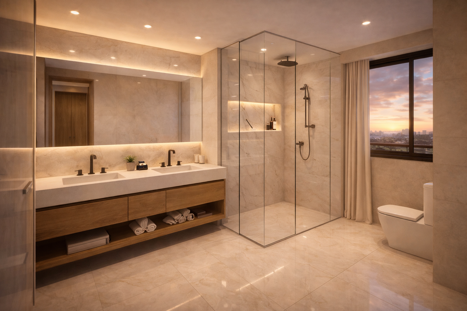 Cada imagem abaixo é o resultado de cálculos rigorosos de simulação fotorealista. Deslize e comprove a precisão geométrica e lumínica.